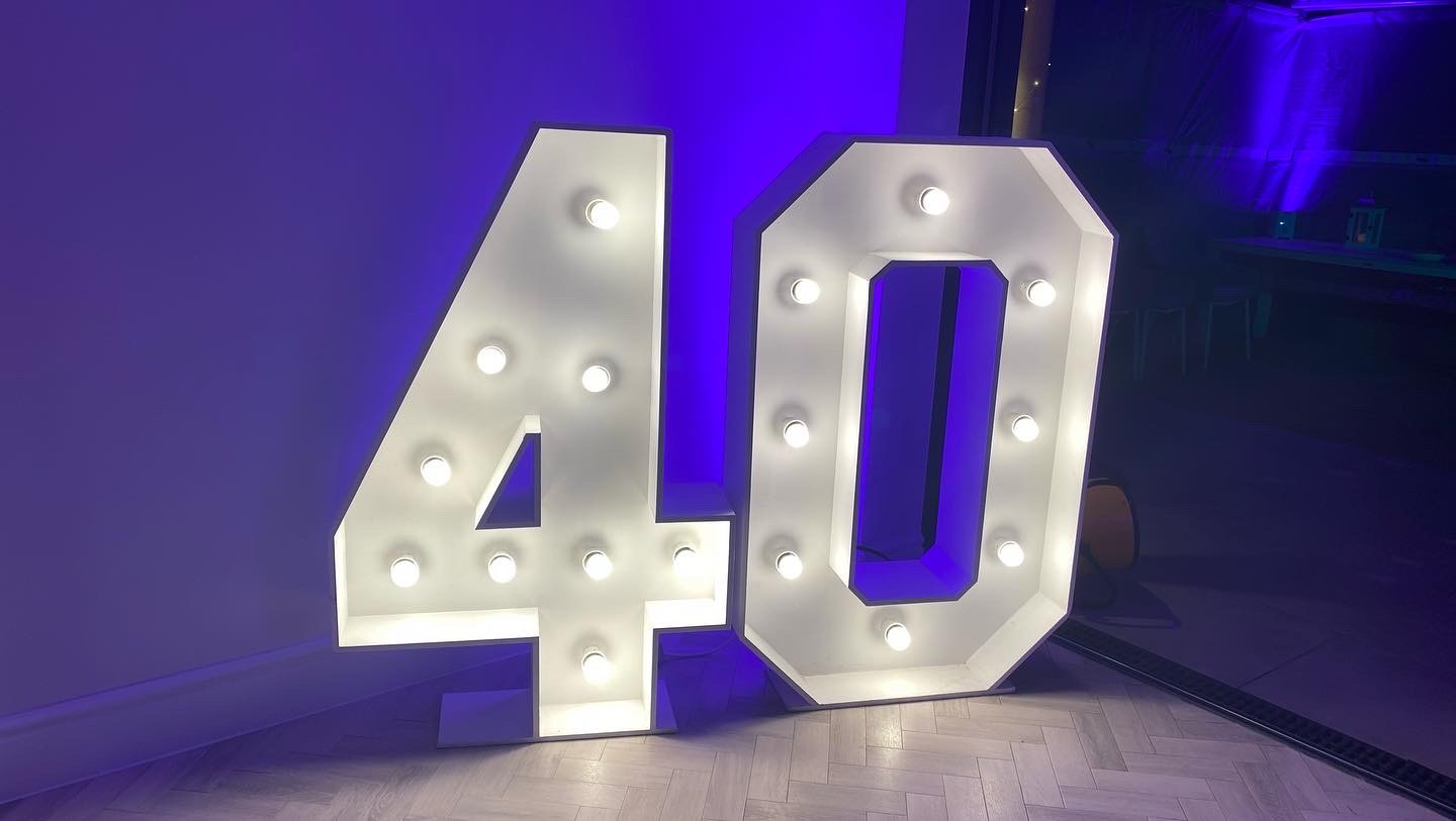 Nicholls Entertainment's Giant Light-Up Numbers add a touch of glamour to your Essex or milestone birthday celebration. Whether it's an 18th, 21st, 30th, 40th, or 50th birthday in Essex or beyond, Nicholls Entertainment giant lightup numbers create a captivating focal point and photo backdrop.